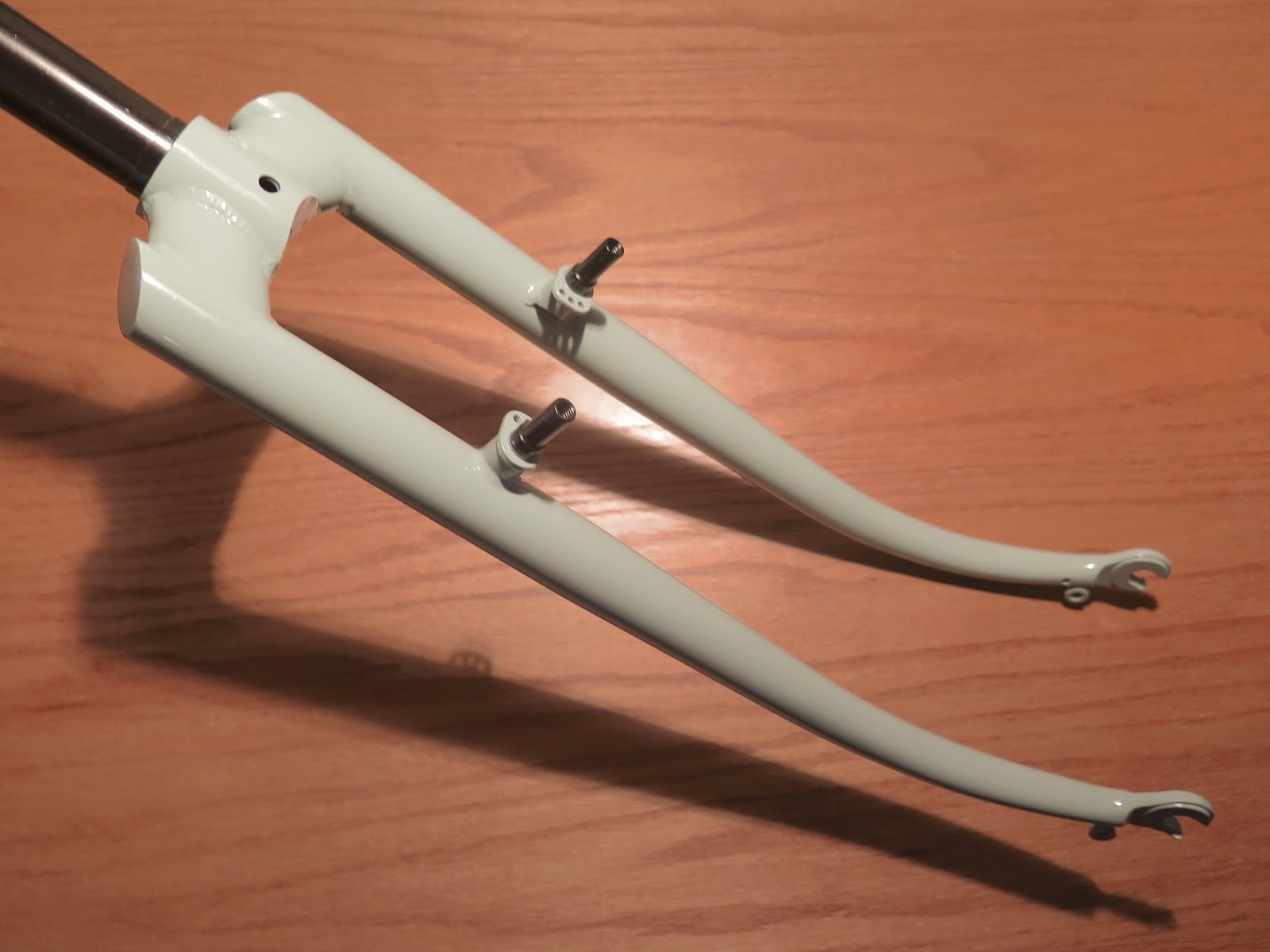 I've been riding the bicycle for several months and - first things first - it is far and away THE most enjoyable and nicest bike I've ever owned and/or ridden! Obviously your skills and savoir-faire and inspired enginnering are a large part of that so - so I wanted to thank you. Other factors that contirbute to the bike's handling are 33mm Jack Brown tires (from Rivendell) - which are truly not only cushy but surprisingly fast too and obviously contribute a lot to the bike's handling...It is equipped with (centerpull) brakes that are powerful, smooth, and stop on a metaphoric dime. The handlebars are Velo Orange's randonneur model with the slightly flared shape which I'm appreciating more and more as I put in more time...
