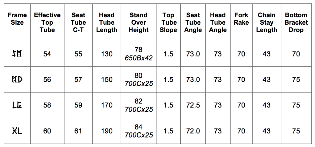 - Tire clearance for up to 42mm (SM); 35c (MD, LG and XL)